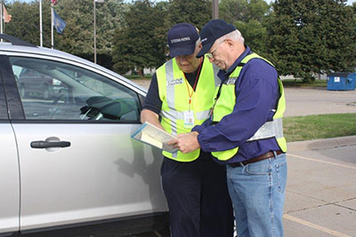 Trained citizen patrollers drive through the neighborhood in visibly-marked vehicles, observe conditions in the neighborhood, and report any suspicious activity or situations of danger or emergency to law enforcement.